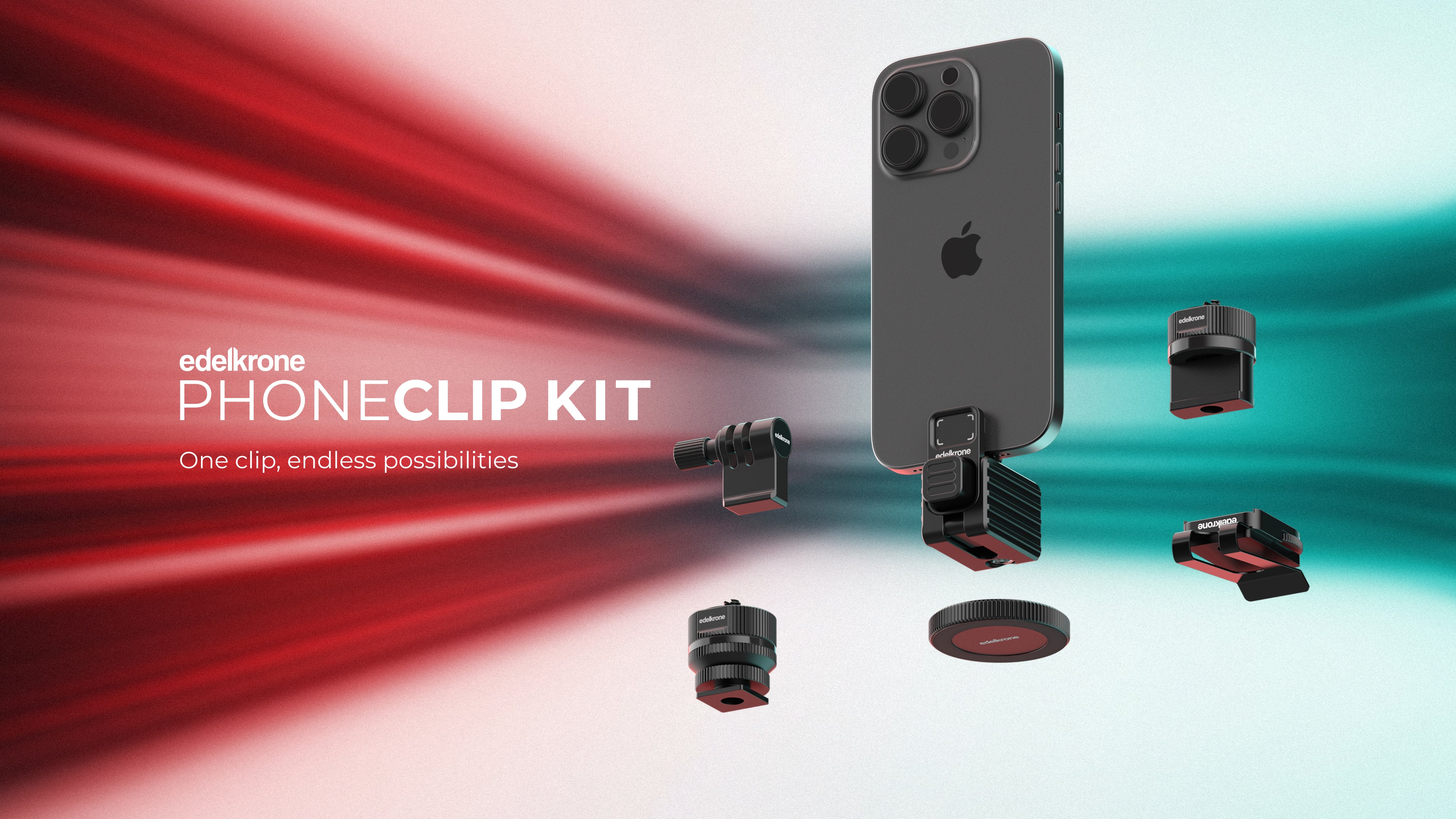 The edelkrone PhoneCLIP KIT is a professional, modular mounting set that includes: